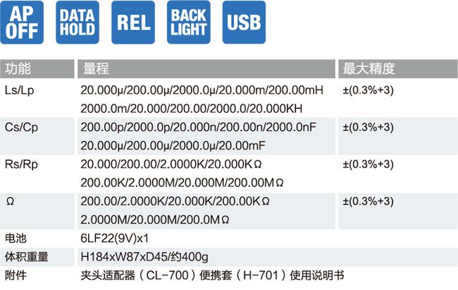 ■ 5种测试频率100Hz-100KHz