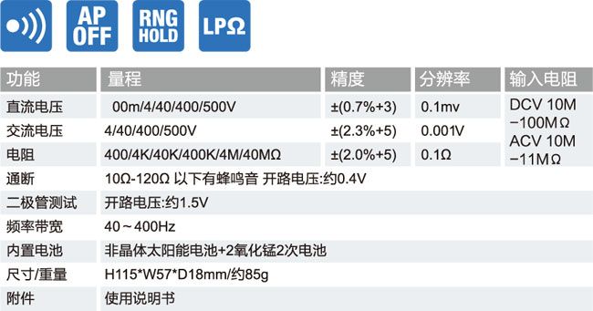 ■ 标配镀金表笔,防腐、防接触不良,提高测量的精度