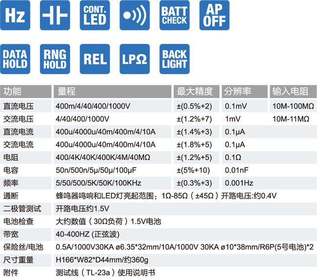 ■ 标配镀金表笔,防腐、防接触不良,提高测量的精度