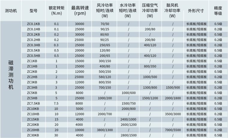 ZC系列磁滞测功机适用于低到中等功率的电机测试。磁滞测功机不需要依靠速度来产生扭力,因此可以进行空载到堵转的全程测试。磁滞测功机的冷却方式可分为对流冷却及循环水冷却,依型号有所不同。磁滞测功机有连续和短时两种额定功率。根据测功机的大小与系统组成,其精确度为:转速:±0.2%,转矩:±0.5%。可以提供专为小型动力和高速电机所设计的磁滞测功机。