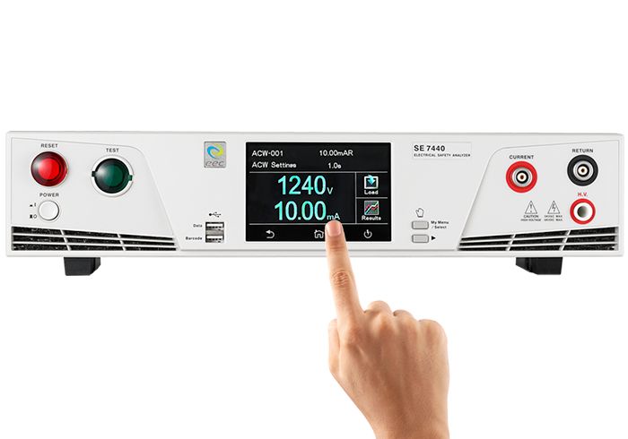 新一代的 SE系列四合一安规测试仪效能再升级,结合了业界指标性的ARC电弧侦测功能,高精度四线测量及真实负电压测试,进一步强化安全性,和输出功率达 500VA的便利性。完善配套的测试仪更加符合现今产业多变的实时需求。在操作接口上,搭配4.3吋多点触控面板及条形码扫描链接,使用上更简洁有效率。