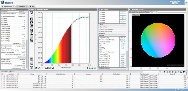 Integral®软件允许用户快速、准确且同时测量各种灯具或固定装置的光学和热学性能。每个illumiaPlus2温控积分球光谱仪都包含一个完全集成的Cincinnati Sub-Zero ZPRCS-1816-6-SC/AC Z Plus远程调节器,用于控制和监测温度。通过自带的 IES LM-79 -19和 S025标准稳定程序,符合IES LM-79 -19, IES LM-78, LM-82和等效测量,实时LIVT扫描测试,提高您对灯和灯具的信心,同时提高测试效率。