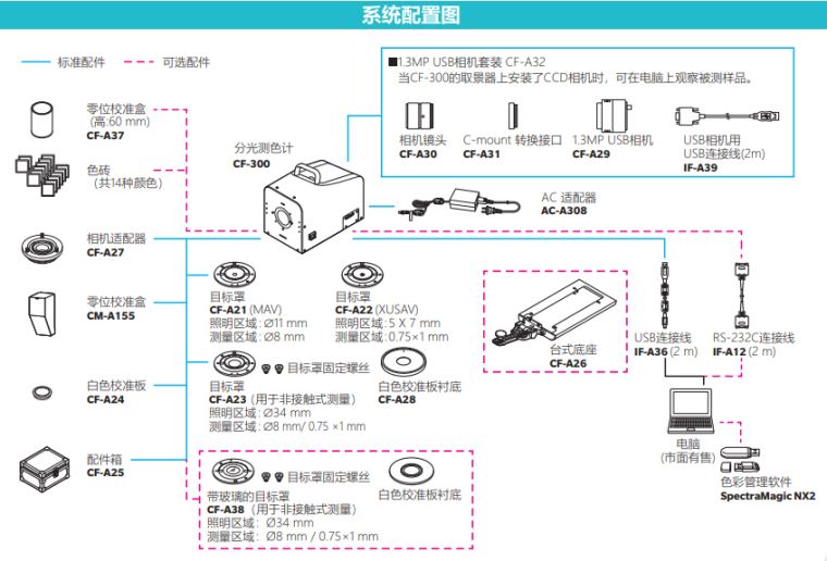 基于积分球结构的分光色差仪CF-300,专为小部件物体颜色而设计,支持非接触式测量和在线生产的快速连续测量。