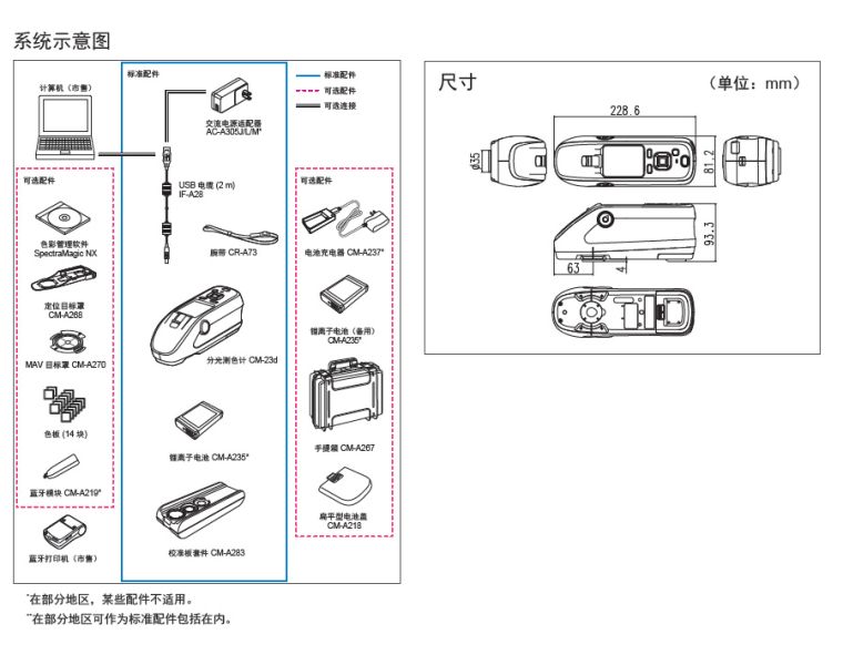 | 色度数据 | L*a*b*, L*C*h, CMC (1:1), CMC (2:1), CIE94, CIE00, Yxy, XYZ,以及这些空间的色差;Munsell (C) |