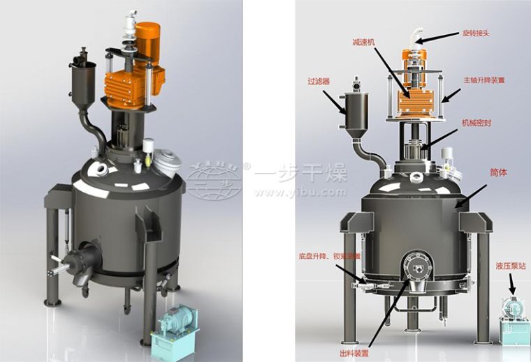 ●同时干燥:过滤、清洗和干燥能在同一设备中完成。容器壁可以配备加热套层,从而能够进行干燥的操作。