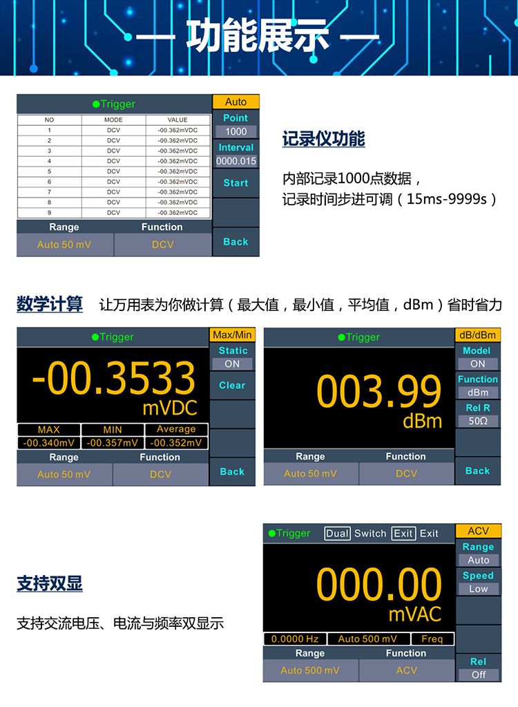 | 真有效值交流电流 | 500uA-500mA | / | 0.5%+20 |