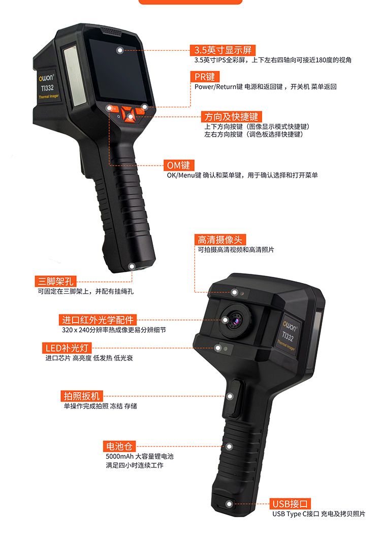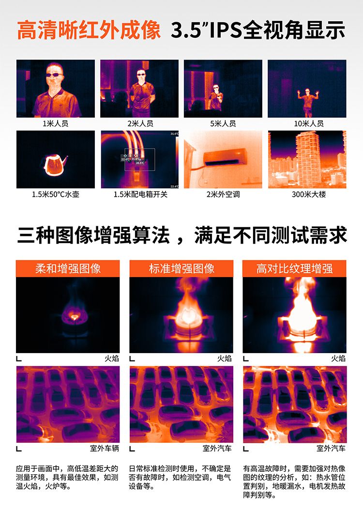 + 5种色板可选(黑热、白热、彩虹、铁红、增强铁红)