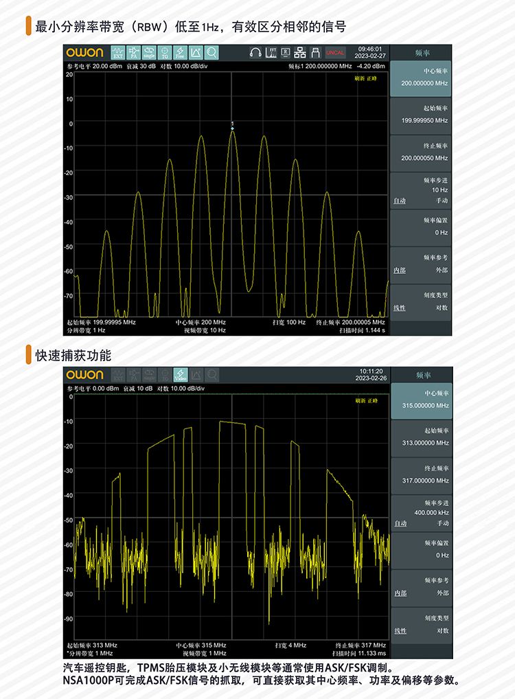 - 最小分辨率带宽(RBW)1Hz