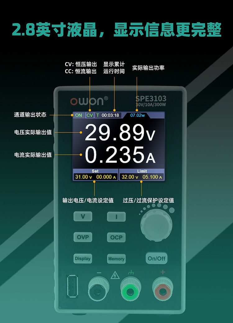 | 设定值精确度 (12个月内) (25℃±5℃) | 电压 | ≤0.1% ± 30mV |