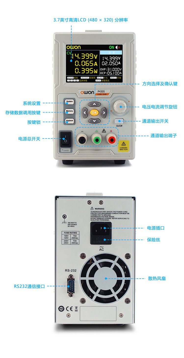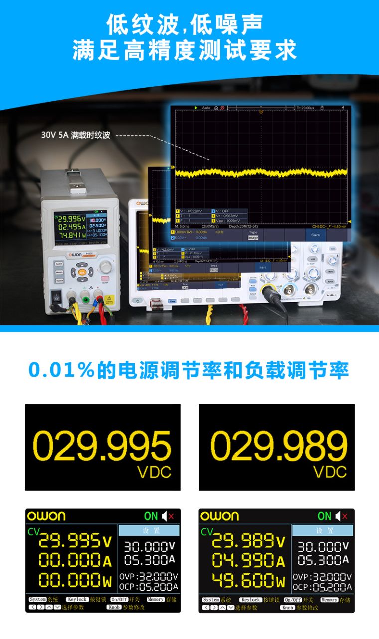 | 纹波与噪声 (20Hz-20MHz) | 电压(Vp-p) | ≤4mVp-p |