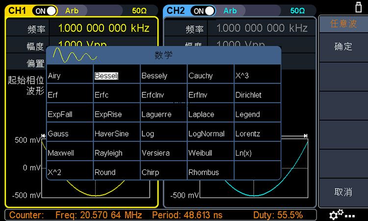 | 任意波形 | since、指数上升、指数下降、心电图、高斯、半正矢、洛伦兹、双音频、DC电压共计160种 |