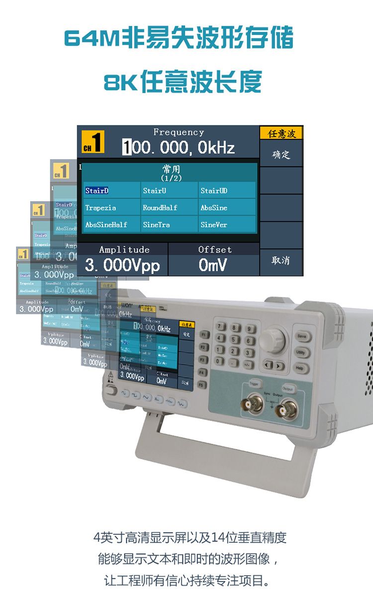 + 14 bits垂直分辨率,8K点任意波形长度