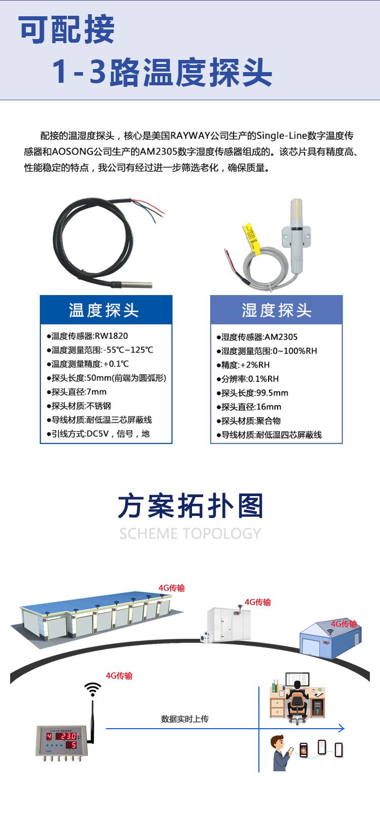 3、可接入1-8个数字化RW1820温度探头(可扩展数字化湿度探头)。