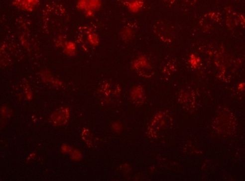 图A 转染 0.8μg GFP质粒于Hela细胞 图B 转染 20pmol Cy3-siRNA于Hela细胞