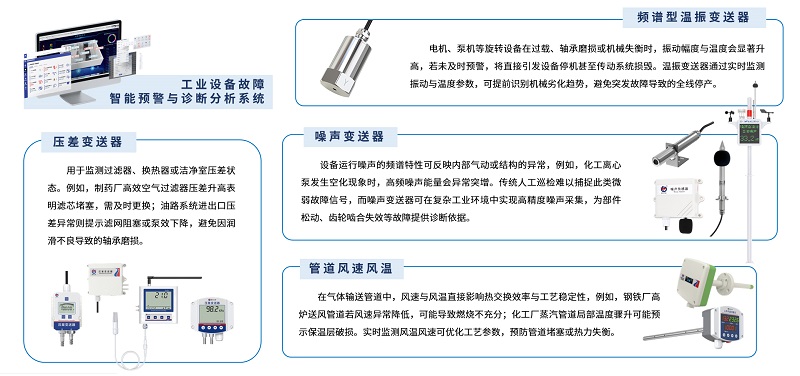 硬件设备包含温振、噪声、气体浓度、空气温湿度、高精度倾角、管道压力、投入式液位等系列变送器及多种控制器。通过科学规划的安装方案,这些硬件设备可被精准部署于工业设备的关键部件及周边环境,实现全方位、多维度的状态感知。它们能够实时、连续地采集工业设备的振动频率、工作电流、异常噪音以及环境温湿度、气体浓度等多维度参数,精准捕捉各类故障隐患与环境风险,从而有效保障生产安全与稳定,为工业的数字化与智能化转型奠定坚实的数据基础。