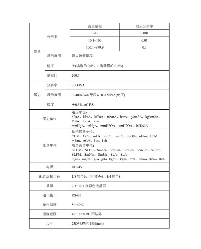 · 体积流量:CCM、CCS、mL/s、mL/m、mL/h、cm3/h、uL/m
