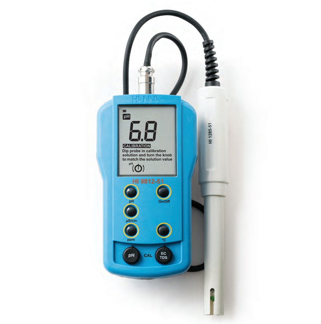 HI9812-51为多功能、防水型、多参数、便携式测定仪,使用HI1285-51电极,电极采用独特DIN接口设计和胶质电解液,适合应用于常规、温室、水培、水处理、农业、锅炉、冷却塔等样品测量。仪器带有超大背景灯液晶显示屏,可显示测量参数及校准指示标识,通过面板上的旋钮即可轻松进行校准;Hanna独特的CAL CHECK TM校准核查功能,用户在任何时候都可快速检查多参数电极的校准状态。