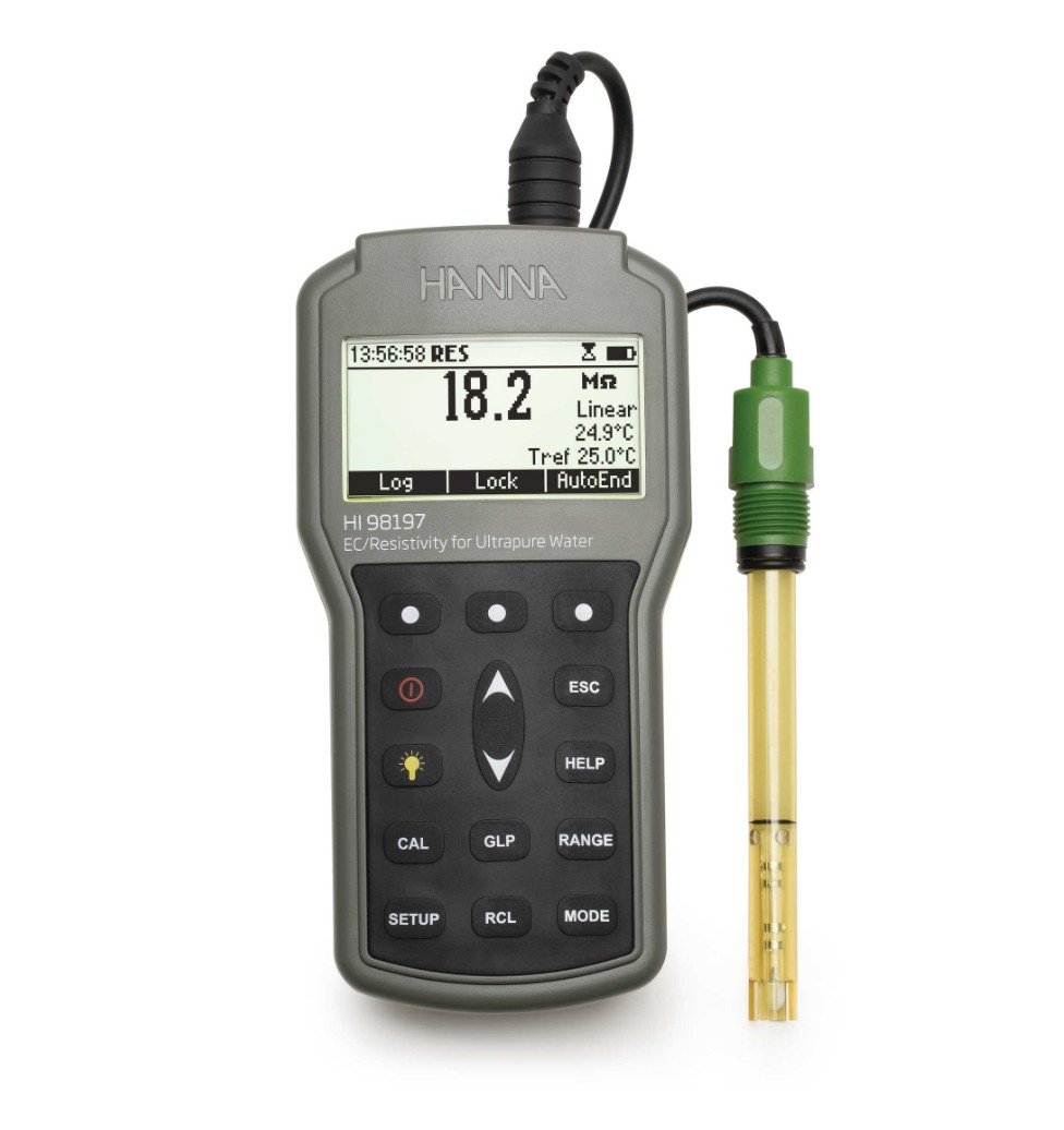 主机、HI763123内置温度传感器的四环铂金EC/TDS 电极,DIN接口,1m线长、4*1.5V AA电池、中英文使用说明书