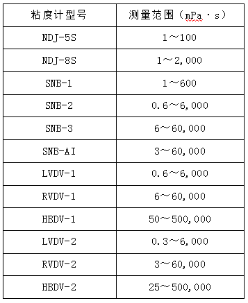 可测较低粘度,配合不同型号粘度计使用时的测量范围见下表