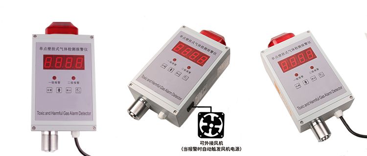 单点壁挂气体报警仪是本公司研制的一款可以检测气体浓度并实时显示的智能可控报警系统。该产品具有稳定,智能化的特点,并通过简单设置即可进行现场检测与报警。该系统主要应用于需要检测可燃气,氧气与各种有毒气体的场合中,显示待检气体的数值指标量,当现场的某种待检气体的指标超出或低于所设置的标准时,系统会自动进行一系列报警动作,如报警,排风,跳闸等(根据用户所接设备的不同而不同)。