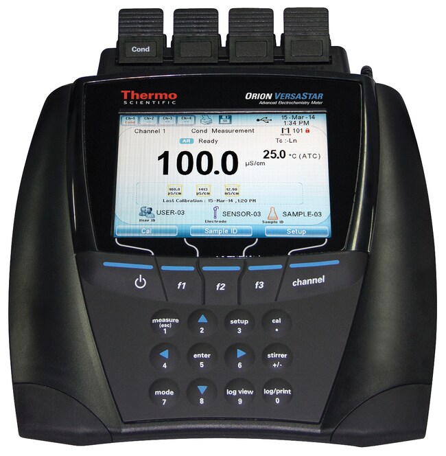 Thermo Scientific Orion Versa Star Pro 台式测量仪设计用于轻松满足您**挑战性的应用的要求。通过其丰富的功能与特色,可对您的测量仪系统进行优化设置,满足不断变化的需求。Orion Versa Star Pro 台式测量仪可以提供可互换测量模块,支持多名用户进行 4 个独立通道的定制以满足其特定需求。文字大小可调,轻松查看高质量彩色显示屏上的测量结果。杜绝测量仪校准工作中的猜测成分,可按照支持多种当地语言的屏显说明进行设置。使用数字键盘,享受快捷、简便的数据录入。