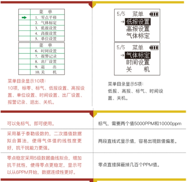 | 报警点 | 可手动设置,默认低报警值500μmol/mol,高报警值2000μmol/mol |