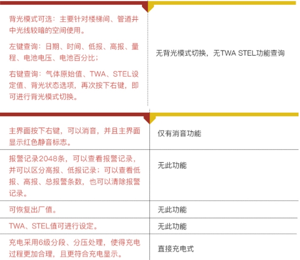 | 被测气体 | 测量范围 | 可选量程 | 分辨率 | 报警点 |
