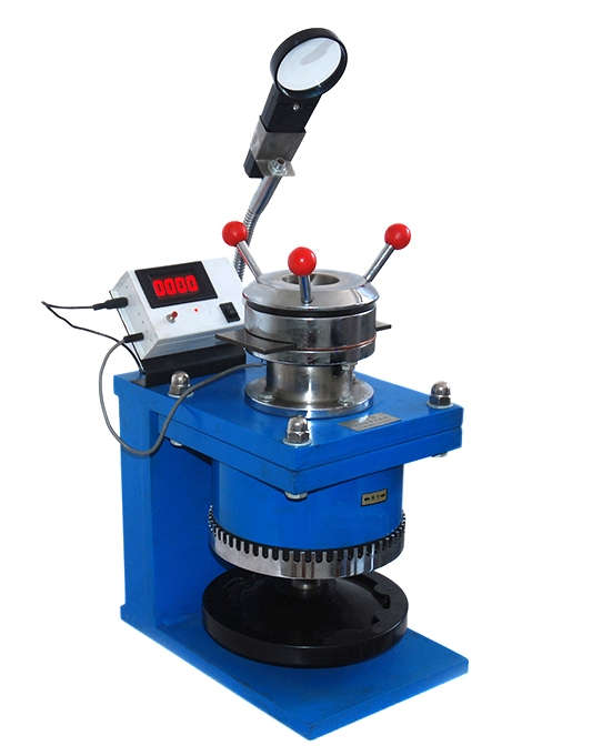 将试验机手轮朝下降方向(顺时针方向)旋到底,松动试验机上部试片压紧装置,用随机的调零钢板插入试验机上部的夹缝中,紧固压紧装置。按一下仪表红色按钮,使显示器显示为零。以上升方向(逆时针方向)转动手轮,当读数接近1.80mm时,放慢速度。当仪器红色灯亮时,也就是显示器为零时,停止转动手轮。松开压紧装置,再手动清零(按一下仪表红色 按钮),以0.2±0.1mm/s速度向上升方向转动手轮,显示器读数为上升高度也就是压陷深度。