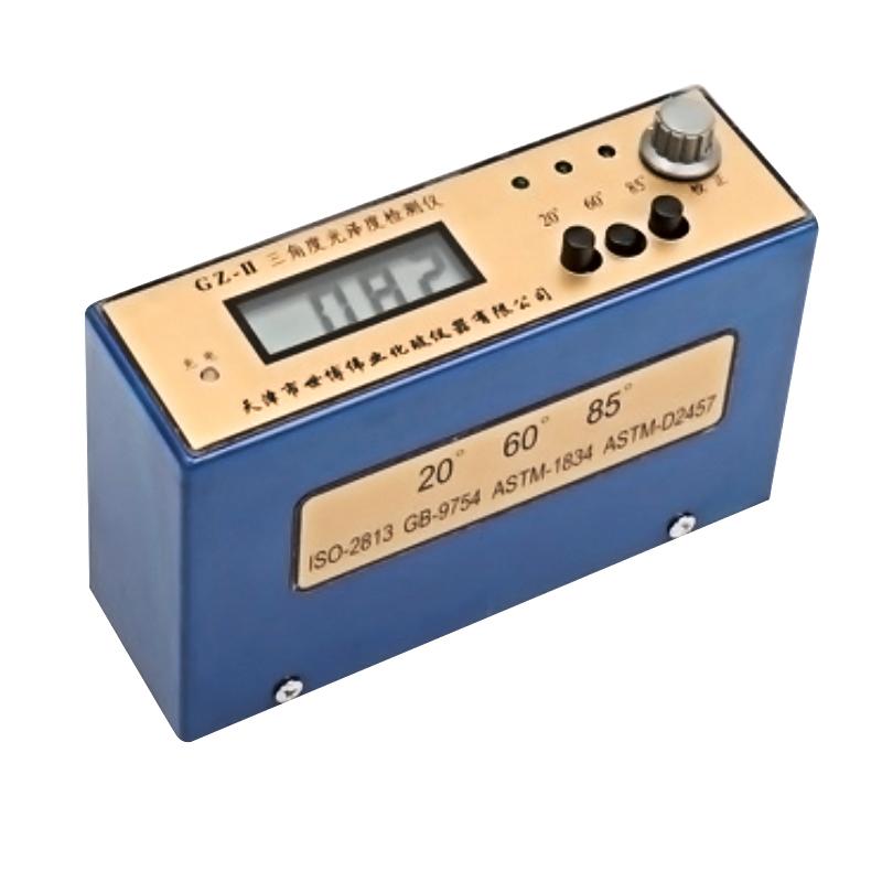 GZ-II型镜向光泽度仪是新开发的小型便携机。其技术参数完全符合国家标准GB9754-88\GB9966.5和国际标准ISO2813。各项性能指标均达到国家计量检定规程JJG696-2002一级工作机的要求。本产品适用于油漆、涂料、油墨、塑料、石材、纸张、搪瓷、瓷砖等平面制品光泽度的测量。