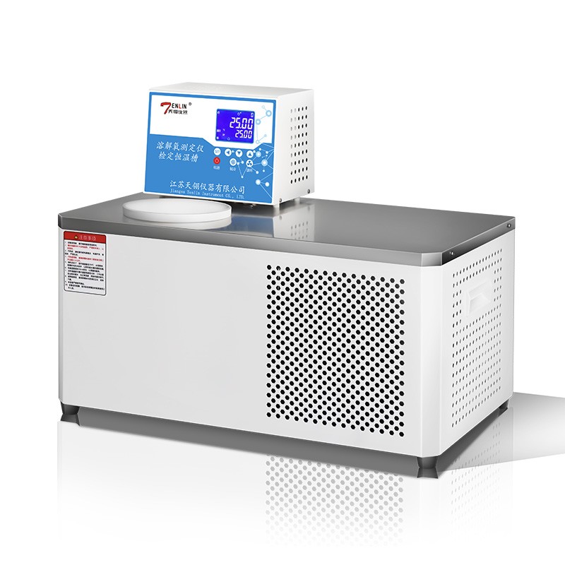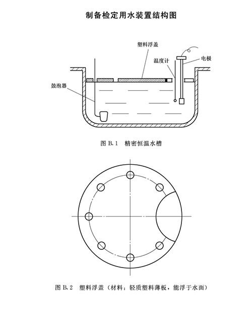 在溶解氧测定仪检定装置恒温槽里注入80%容积新鲜蒸馏水,将多孔塑料浮盖浮于水面,水温调节到检定时所需的温度,打开循环泵搅拌水样,同时加鼓泡器(即空气泵)向水中连续曝气60min以上停止曝气,水静止30min后即可用于检定。