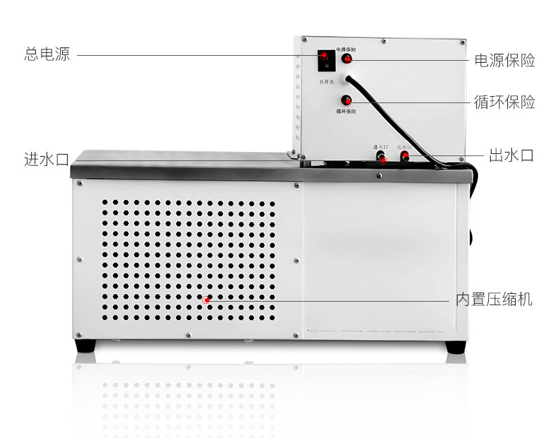 ● 的内循环和外循环系统,内循环使温度均匀稳定,外循环泵输出6L/min、13L/min的流量恒温液体去建立机外**恒温场,还可作为冷源去冷却机外实验容器。