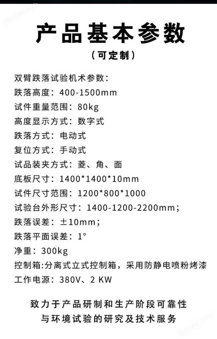 单臂设计,设备通常采用单臂结构,便于操作和调整;高度可调,跌落高度可以根据测试要求进行调整,通常通过电动或手动方式实现;多种跌落方式,支持角跌落、棱跌落和面跌落等多种跌落方式,以模拟不同的跌落场景;安全保护,设备通常配备安全防护装置,如防护栏和紧急停止按钮,确保操作安全;数据记录,部分高品质设备配备数据记录功能,可以记录跌落高度、冲击力等参数。