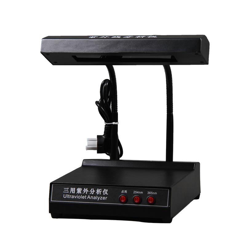 紫外分析仪的紫外灯采用石英玻璃紫外等灯管及滤光片组成,两组光源的波长分别为25nm和365nm。光源经滤光片滤色即可用于实验,两种光源既能单独使用亦可同时混合使用。