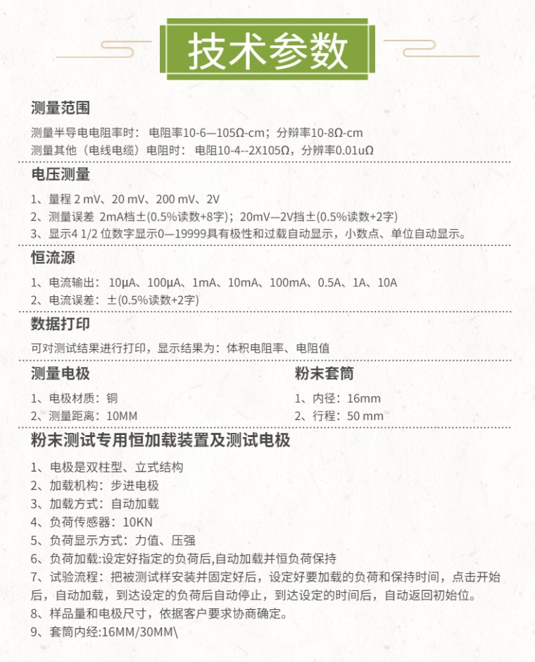 仪器适用于导体粉末、半导体粉末、炭素材料等行业,进行检测必备测试设备。