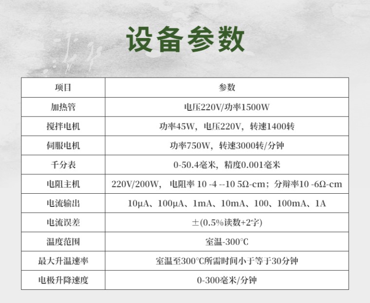 10.设备操作:升温采用程序段升温方式并可以设置升温速率,电极升降速度与位置自由设置