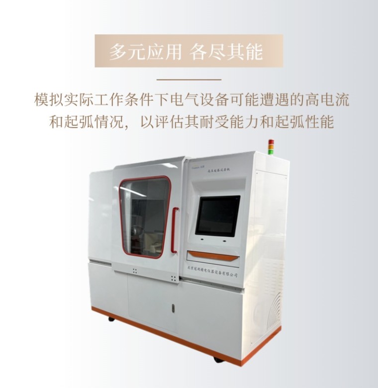 主要用于模拟实际工作条件下电气设备可能遭遇的高电流和起弧情况,以评估其耐受能力和起弧性能。通过模拟高电流和起弧情况,对电气设备的耐受能力进行测试和评估。它通常使用高功率的电源(如变压器或电流发生器)提供所需的高电流,并通过导线或电缆将电流传输到待测试的电气设备上。试验过程中,可能会引发电弧,从而模拟实际工作条件下的高电流和起弧情况。同时,试验机会记录和监测电流、电压、电弧持续时间等参数,以评估设备的耐受能力和起弧性能。
