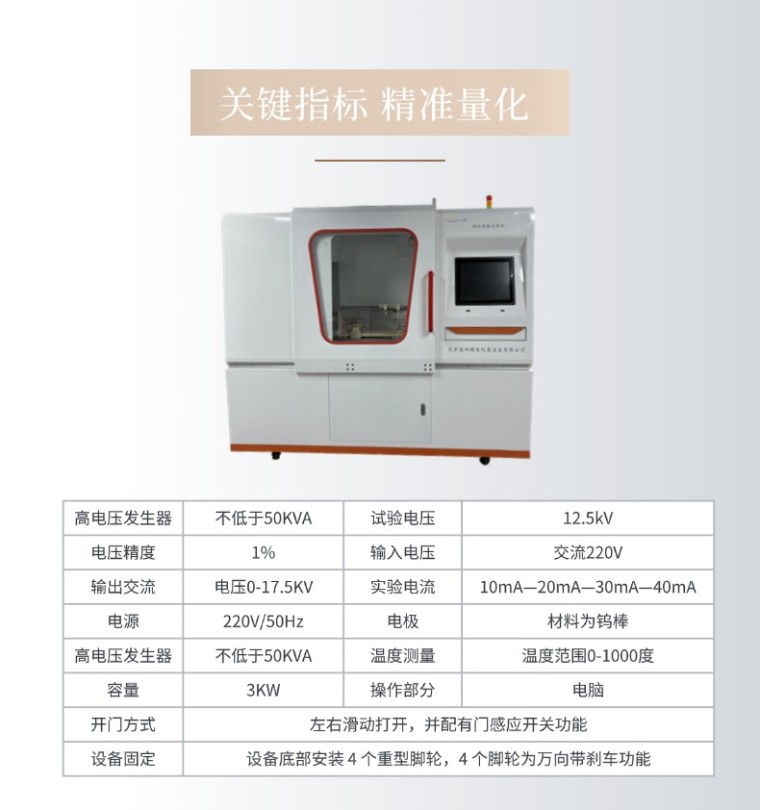 是一种用于评估材料在高压电弧作用下的耐烧蚀性能的测试设备。一、定义与功能