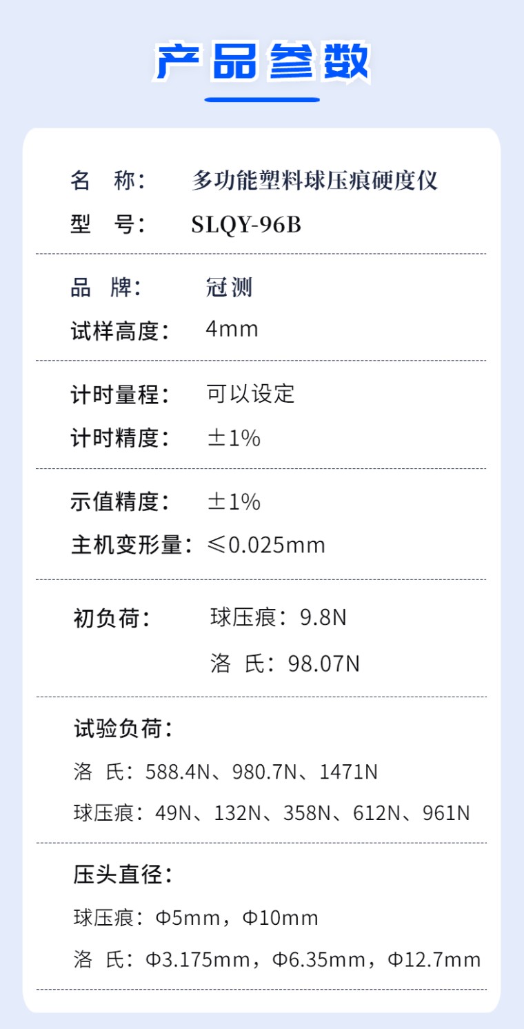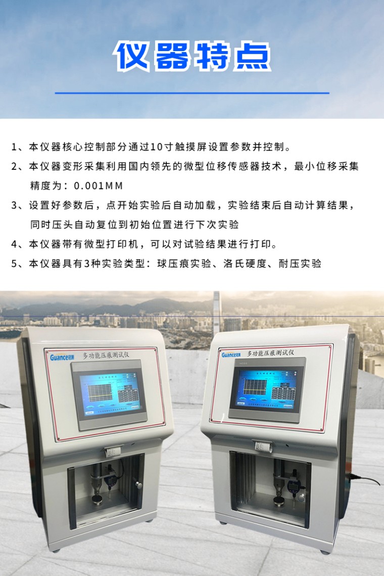 塑料球压痕硬度仪是在指用直径为5MM的钢球,在规定试验负荷作用下,垂直压入试样表面,保持30S后计算球压痕面积上所承受的平均压力测试仪。