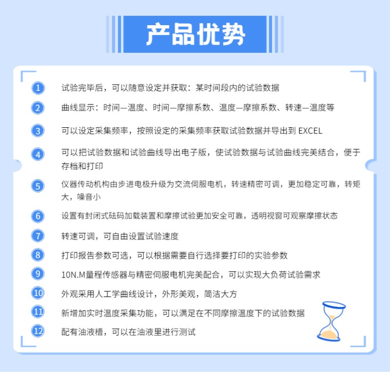 (11)新增加实时温度采集功能,可以满足在不同摩擦温度下的试验数据