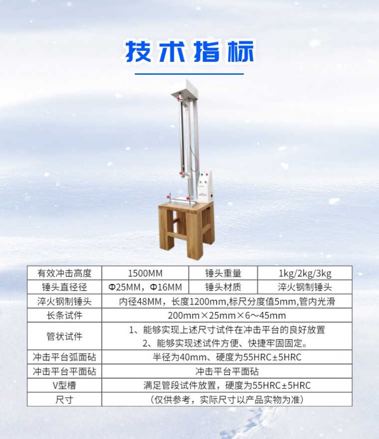 本设备主要应用于一定质量的锤头升到指定的高度后,垂直下落至被测试品后,检测对样品防腐涂层的破坏程度。