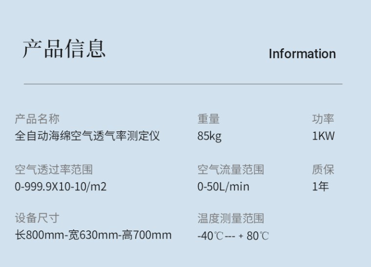 7、数据显示:数据显示**,压差/流量/透气率/温度/线流速/流动比阻抗/流动阻抗