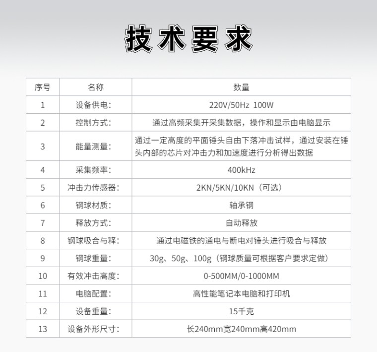 1、有效冲击高度:0-500MM/0-1000MM