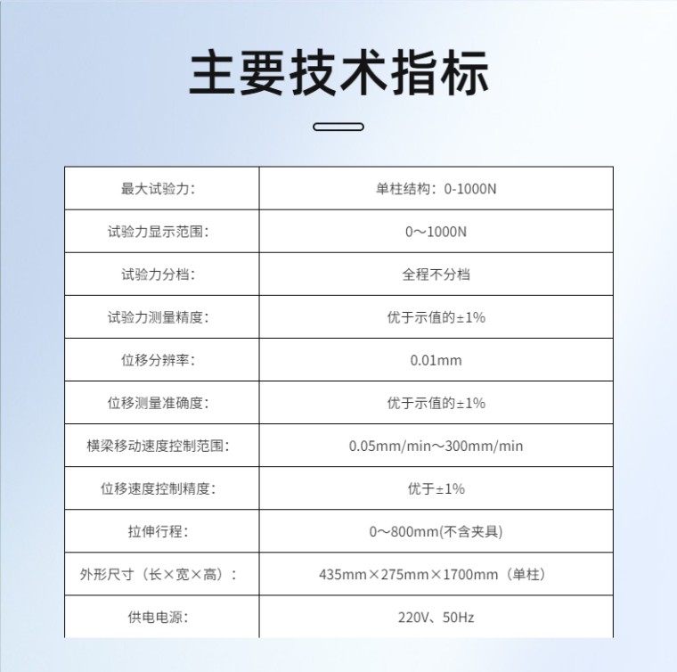 01、*大试验力:单柱结构:0-1000N