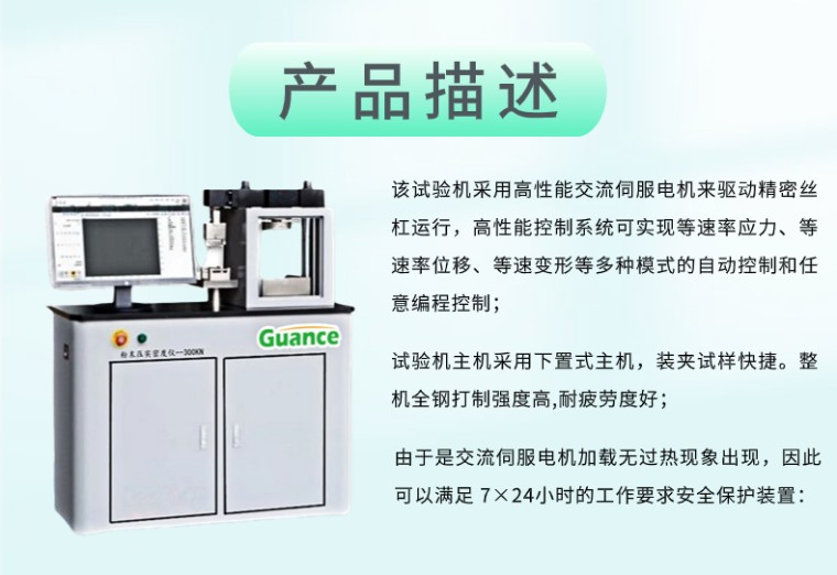 u 该试验机采用高性能交流伺服电机来驱动精密丝杠运行,高性能控制系统可实现等速率