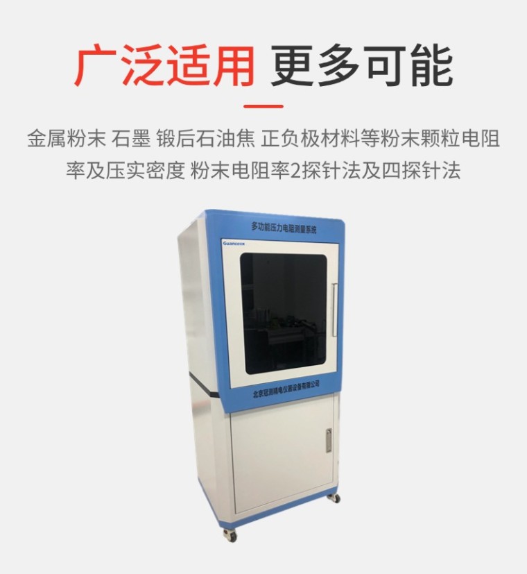 适用对象:主要用于金属粉末、石墨、锻后石油焦、正负极材料等粉末颗粒电阻率测试及压实密度测试,粉末电阻率测试支持2探针法测试及四探针法测试