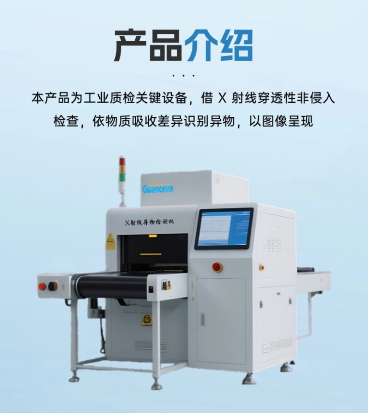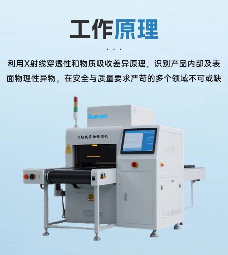 一、工作原理X射线异物检测机利用X射线的穿透性和物质吸收差异原理,识别产品内部及表面的物理性异物(如金属、玻璃、陶瓷、石块、硬质塑料、骨头等),在多个对产品与质量要求严格的领域具有不可替代的作用。