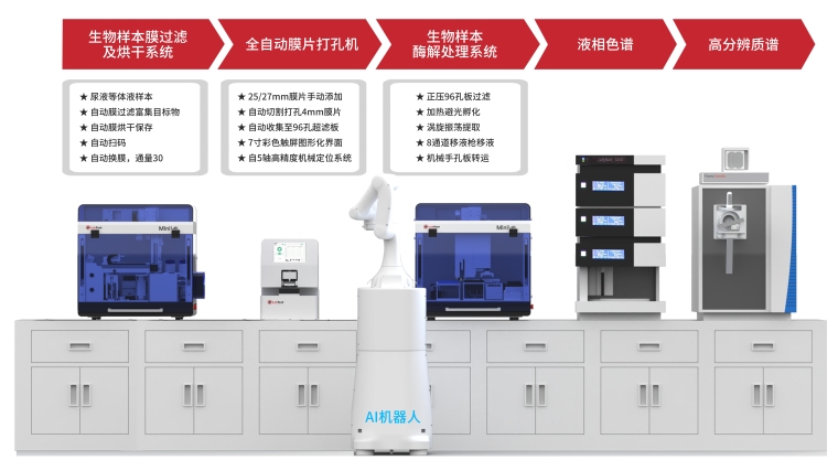 MidiLab9000-Marker组学样本制备分析系统采用生物样本膜过滤烘干系统、全自动膜片打孔、生物样本酶解处理系统,与液相色谱-质谱联用方法相结合,实现蛋白提取、制备,并对生物样本中蛋白进行定性定量分析。