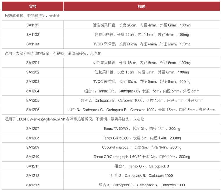 溶剂解吸管通常用于工业卫生环境中的空气采样。它是已装填好吸附剂的密封玻璃管,通常吸附剂为双层,A层为较多一层填充床,B层为较少一层填充床(如下图)。较少一层填充床作为后备填充物,用于捕获因前一层填充床的过载而穿透过来的化合物。填充床之间一般由石英棉或泡沫隔开并固定于玻璃管中。