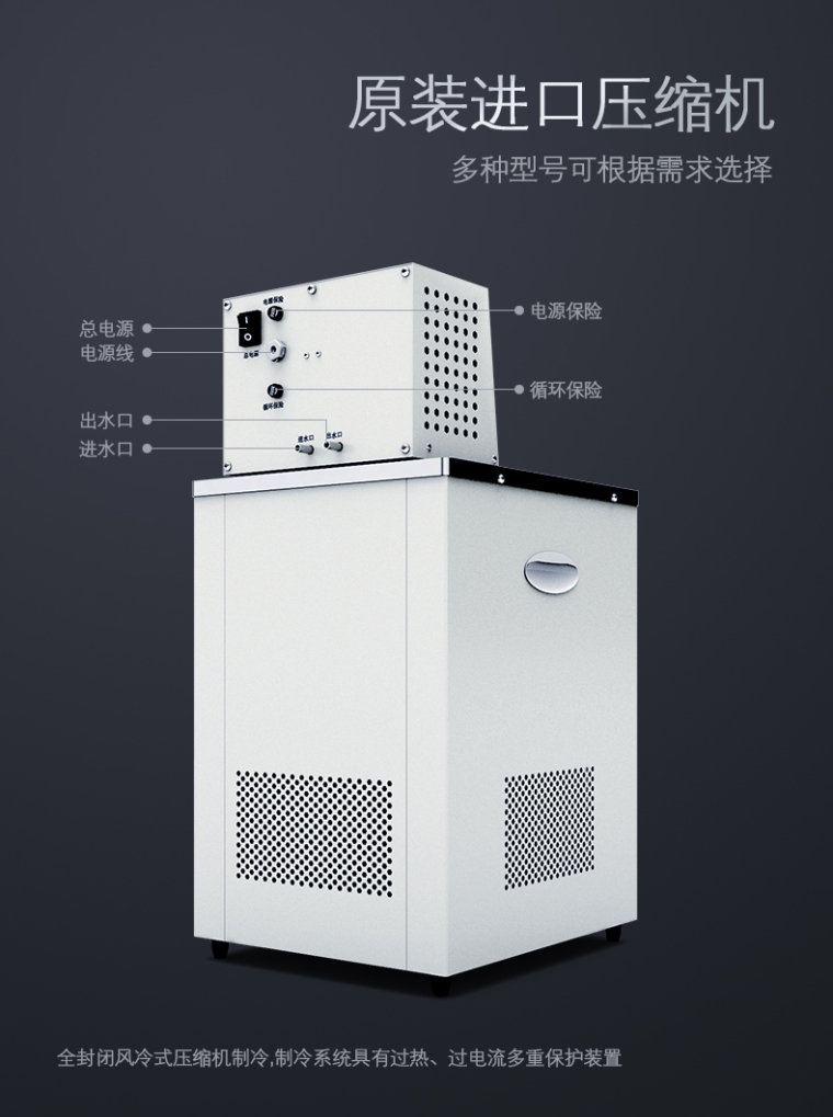4、人性化设计:二边折看式把手方便搬动仪器,DC30系列和低于-40℃C恒温槽采用重型带自锁脚轮,便于移动;