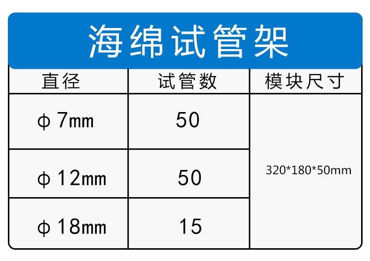 6、可选配多种型号的泡沫试管架,可以极大的满足实验的需求。